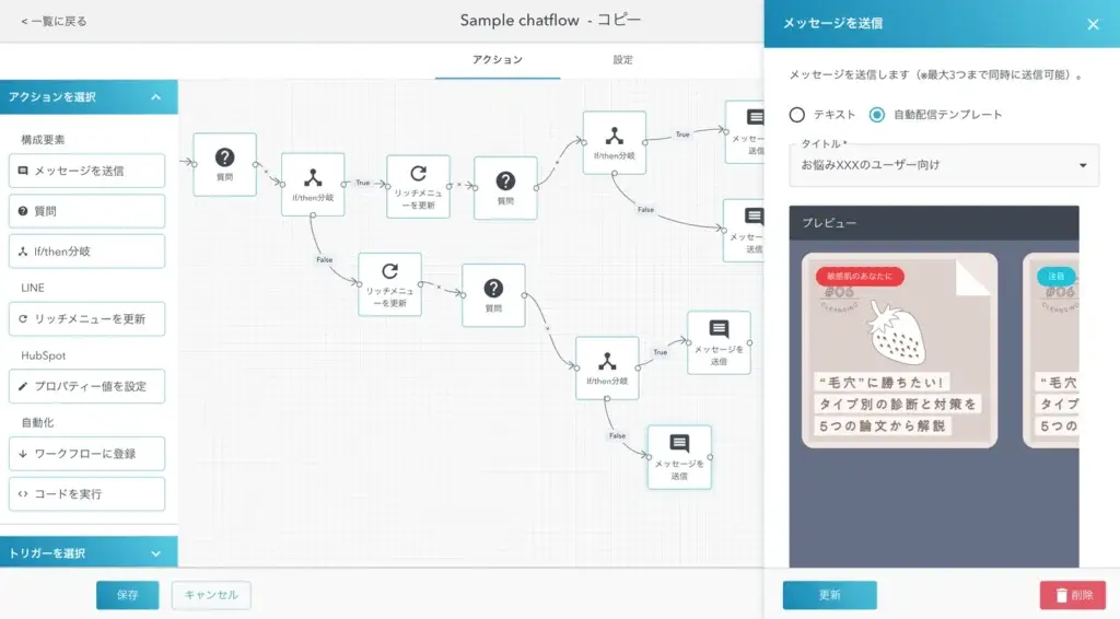 To use the automated template for 1:1 chat, please set the automated template to be used in “Template” settings in advance. Then, you can select it as a template message for the chat.
