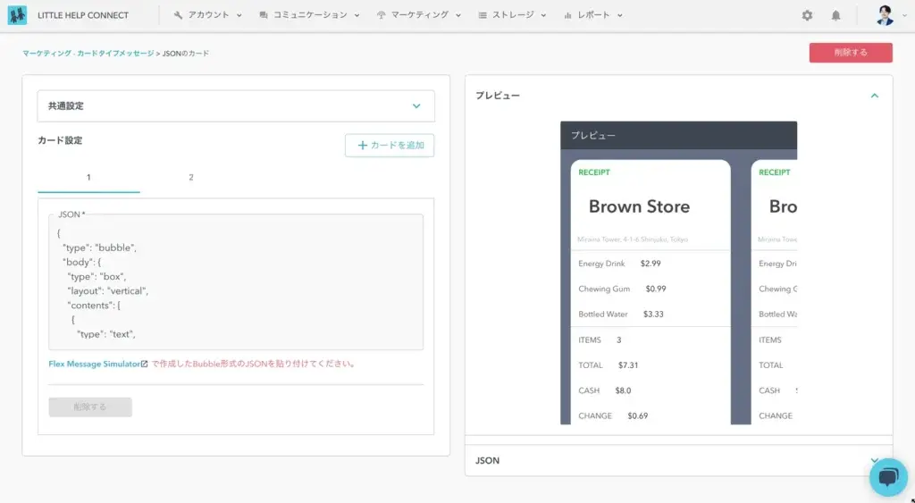 Until now, to deliver card-based messages, it was necessary to create JSON code using an external tool (such as LINE Bot Designer), a complex setup for the typical user.