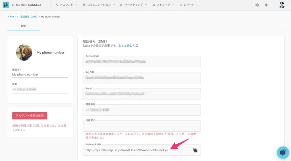3. Japanese location is now used when sending SMS. For receiving, the parameter “#e=tokyo” must be added to the Webhook URL set in Twilio. Please set this parameter if you wish to use a Japanese location.