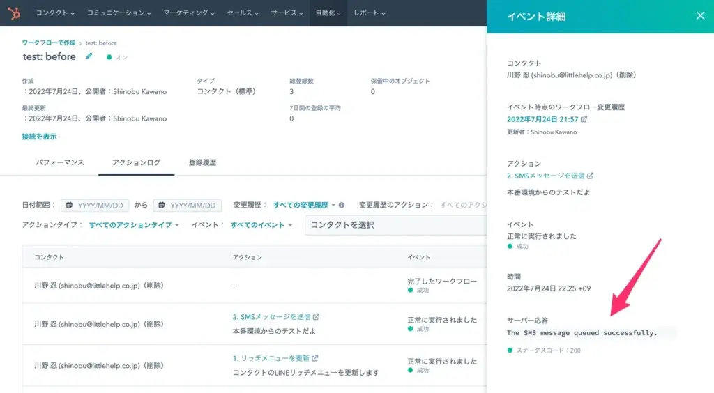 1. You can now add contacts to the “Send SMS message” action in the workflow without worrying about the previous limitations. Please check the action log to see if they have been added to the delivery queue.