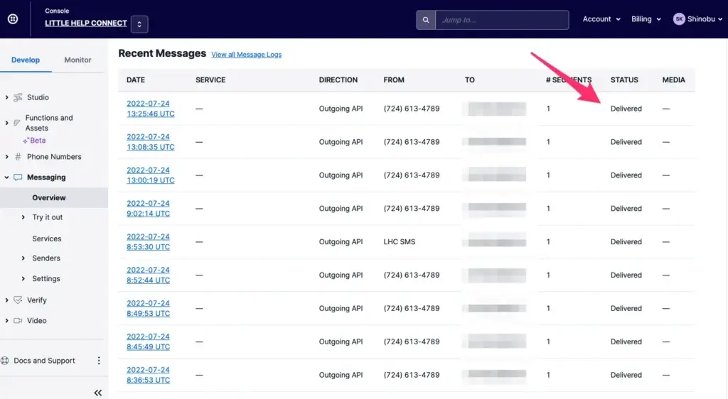 Actual delivery results can be viewed on the Twilio dashboard after being added to the queue.