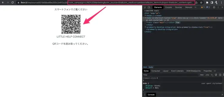 Normally, when a visitor transitions from a Web ad to a landing page, the URL parameter is assigned with the traffic source information (UTM parameter, etc.). Please place the link of the custom QR code issued by LITTLE HELP CONNECT on this page.