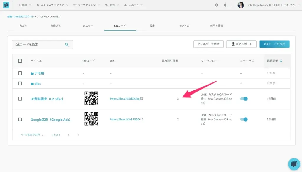The URL parameter of the page where the custom QR code is placed can now be passed to the page or HubSpot contact after adding a LINE friend.