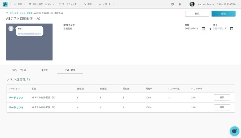 An A/B test function is now available for automated broadcast templates. Messages can be sent randomly with the A and B patterns you created, and their subsequent performance can be checked.