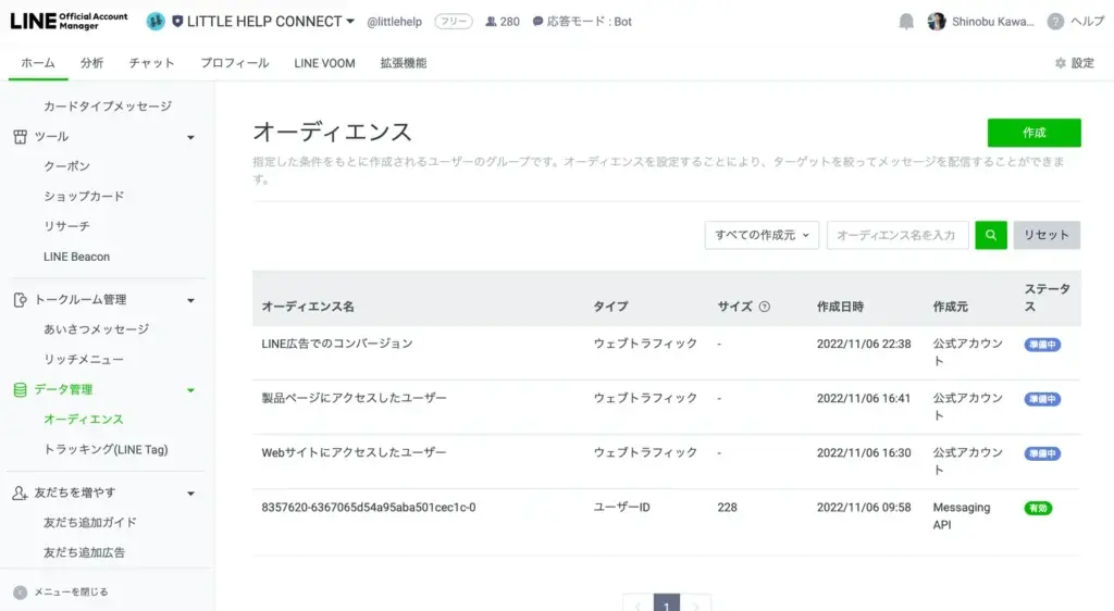 In the “Audience” section, you can select the audience you have created in your LINE official account.