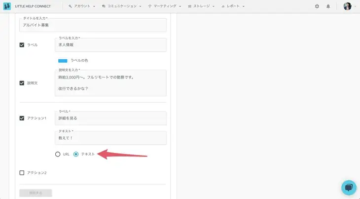 3. “Text” actions are now available for card-based messages.