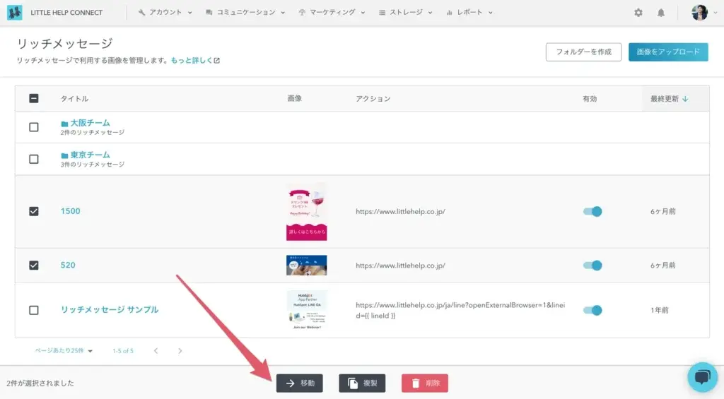 1. The list page for Rich messages, Rich video messages, and Card-based messages has been revamped. Folders can be created from the “Create Folder” button in the upper right corner of the list.