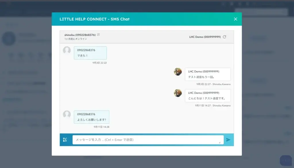 アクリートのSMSを利用してHubSpotコンタクトと1:1のやり取りができます。